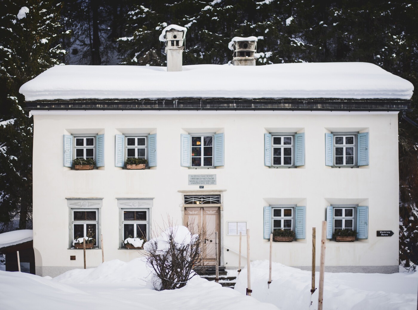 Das unscheinbare Haus an der Via da Marias ist ebenso Gedenkstätte wie Museum, Bibliothek und Ort des Austausches. Hier kann man tief in das Leben des genialen Denkers und Dichters eintauchen: Die Ausstellung umfasst Handschriften, fotografische Dokumente, Erstausgaben seiner Werke, die Originalmöbel aus der Basler Zeit, die beiden Totenmasken und vieles mehr. Immer wieder sind im Haus auch Künstler und Schriftsteller zu Gast und setzen sich mit der Gedankenwelt Nietzsches auseinander. Dabei entstanden schon legendäre Ausstellungen: Im Jahr 1992 zum Beispiel stellte Gerhard Richter im Haus eine Reihe von übermalten Fotografien der Oberengadiner Landschaft aus. Für eine Übernachtung bietet das Nietzsche-Haus einfach eingerichtete Doppelzimmer zum begrenzten Aufenthalt. Mehr erfahren