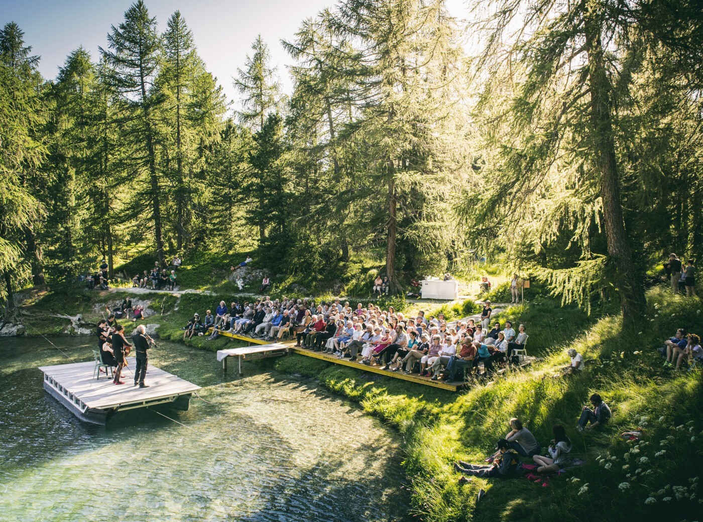 In Sils erleben Sie grosse Künstlerinnen und Künstler in einem intimen Rahmen: zum Beispiel an unserer internationalen Konzertreihe mit Kammermusik und Rezitals oder an den zahlreichen Musikanlässen im Hotel Waldhaus und Hotel Edelweiss. Bei den sommerlichen Sonntagnachmittags-Freilicht-Konzerten auf dem Konzertplatz Fex wird die Natur zur Bühne, ebenso bei den «Wasserzeichen», einer Konzertreihe, die in einer romantisch-verträumten Bucht der Halbinsel Chastè von einem Floss aus alljährlich ein gleichermassen natur- wie musikverbundenes Publikum begeistert.