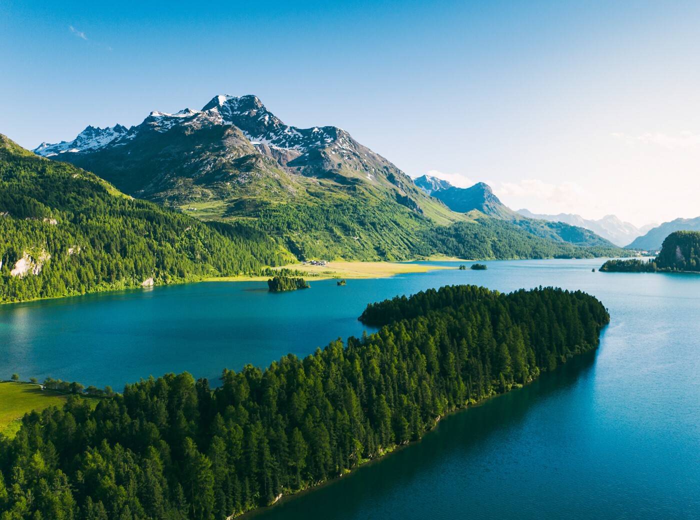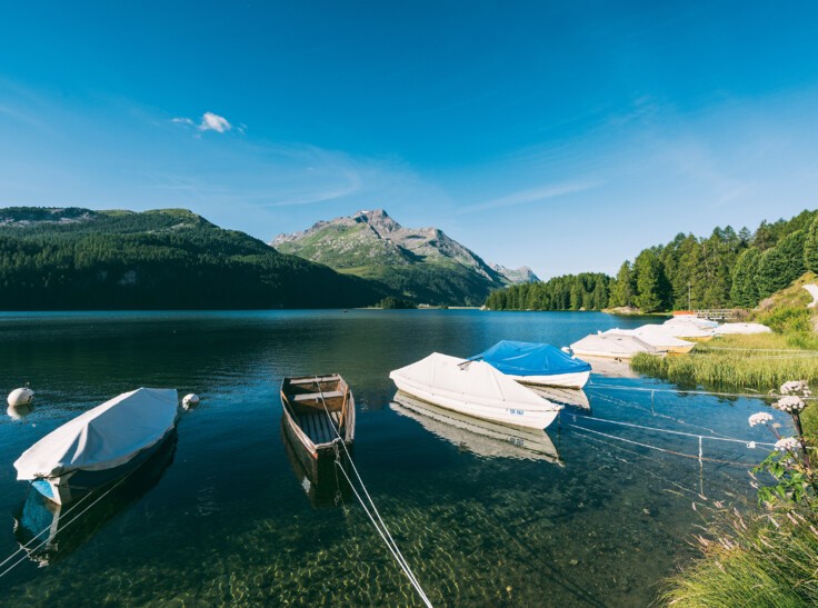 Soviel Platz für Wassersport! Auf dem Silsersee herrscht weder Hektik noch Gedränge. In aller Ruhe können Sie das Gewässer mit Segelboot, Ruderboot, Pedalo, Kajak, Kanu oder Stand-Up-Paddle erkunden. Sportgeräte lassen sich in Plaun da Lej mieten. Ruderboote ebenfalls beim Bootshaus in Sils.