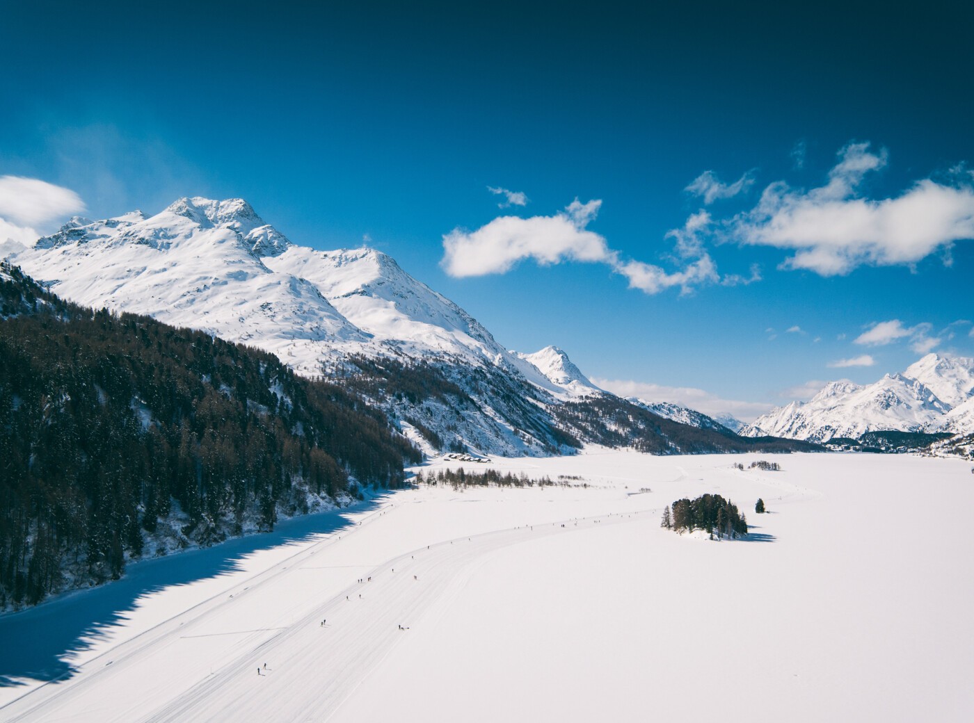 «Ganz See, ganz Mittag, ganz Zeit ohne Ziel» dichtete Nietzsche am Ufer des Silsersees. Hier kommen Geist und Seele zur Ruhe. Mal spiegelt der See messerscharf die umliegenden Berggipfel, mal wühlt der hartnäckige Malojawind die rund vier Quadratkilometer grosse Wasserfläche auf. Ab Ende Dezember/Anfang Januar trägt die Eisdecke und der See wird zum gemütlichen Spazierweg oder zur Langlaufloipe auf markierten Strecken.