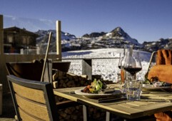Einmalig schön gelegene Sonnenterrasse und Kaminhalle mit Top-Weinangebot. Voranmeldung unerlässlich.