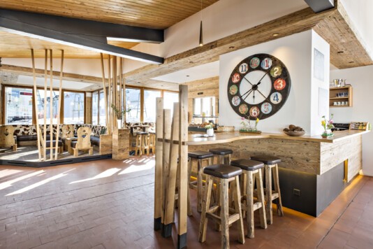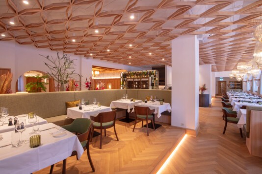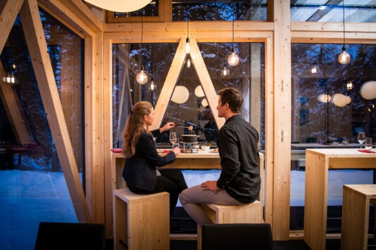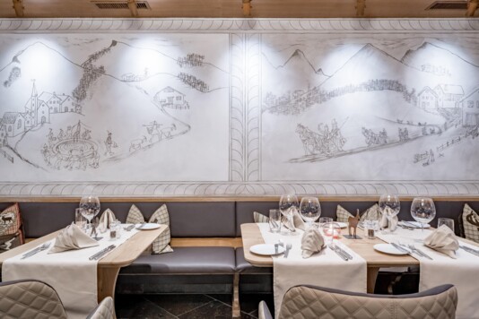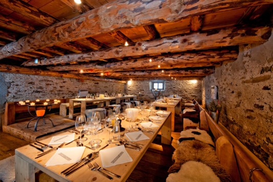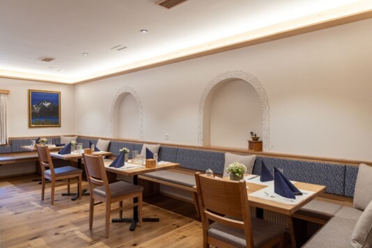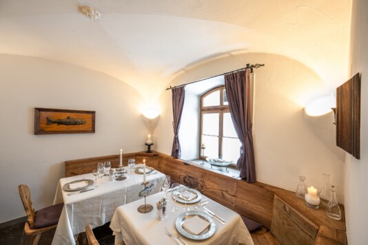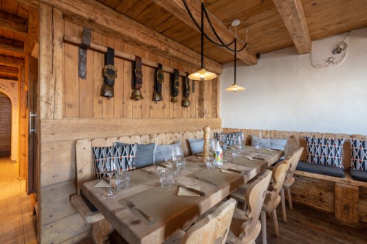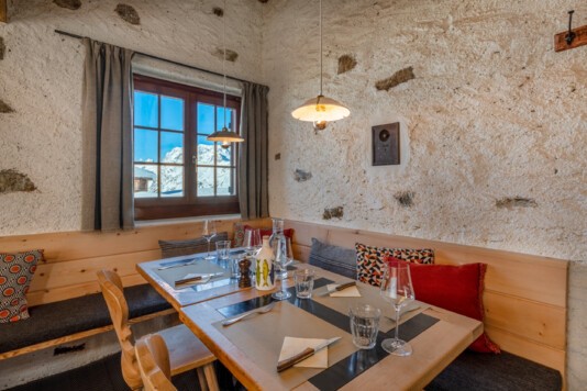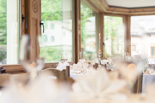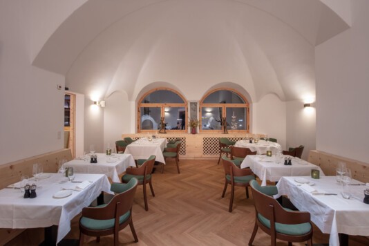Das lichtdurchflutete Restorant dal Parc und die neu gestaltete, separate Stüvetta da Segl mit dem historischen Halbgewölbe sind das Herzstück der Margna-Gastronomie.