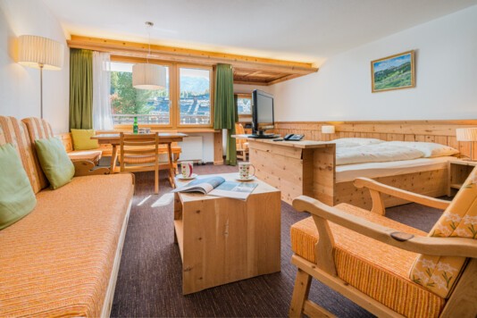 Urige Arvenstube mit einheimischen und internationalen Gerichten.