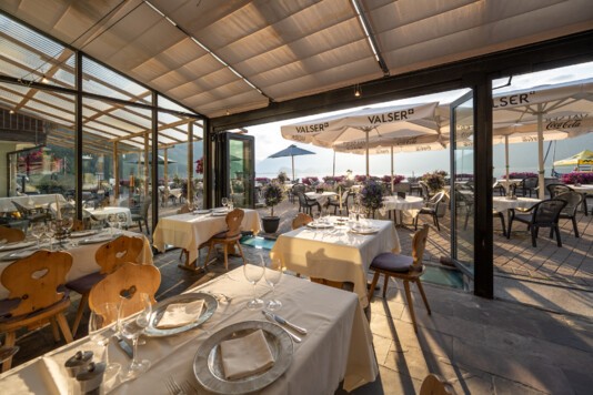 Bleibt die Terrasse wegen schlechtem Wetter geschlossen, wird als Alternative das Restaurant GIGERs ab 12 Uhr durchgehend geöffnet sein (ausser am Montag und Dienstag).
