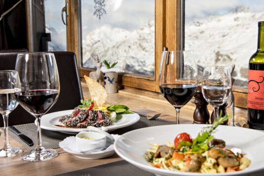 Geniessen Sie regionale und saisonale Köstlichkeiten aus der Fexer-Sonnenküche, begleitet von einem feinen Tropfen aus dem reichhaltigen Weinangebot.