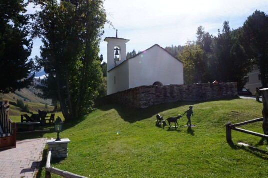 Der Treffpunkt im Zentrum von Sils Maria für Alt und Jung.