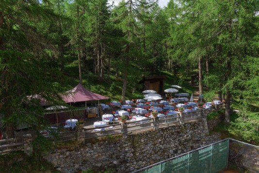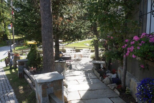 https://www.waldhaus-sils.ch Link zu Google MapsAuf der lauschigen Terrasse mitten im Lärchenwald lässt es sich an schönen Sommertagen stundenlang verweilen.