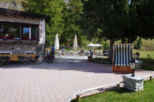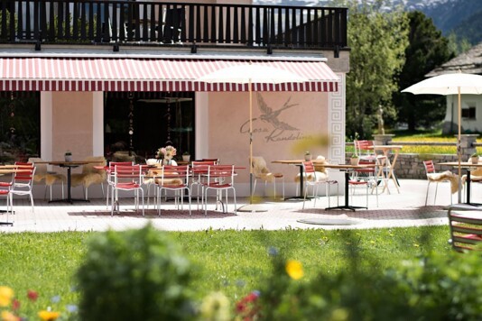 Der Treffpunkt bei Muot Marias: Einheimische Spezialitäten wie Capuns, Pasta sowie weitere Gerichte, hausgemachte Kuchen und verschiedenste Getränke können Sie im Restaurant oder auf der Sonnenterasse geniessen.