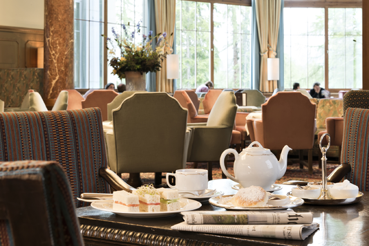 Sie ist der Mittelpunkt des Hauses. Ruhepol und öffentlicher Raum zugleich. Hier wird gelesen und nachgedacht, gespielt und getanzt, diskutiert, sich getroffen und der Nachmittagstee zelebriert. Spätnachmittags ertönen die sanften Klänge des Waldhaus-Trios zum Nachmittagstee. Im Sommer unterhält das Trio die Gäste (bei gutem Wetter) stattdessen am Mittag und am frühen Nachmittag auf der Terrasse (ausser Montags und Donnerstags).
