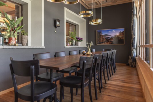 Im ersten Stock, ideal für kleinere Gruppen, befindet sich unser Arvenstübli.