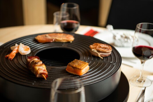 Eine ideale Abwechslung bietet unser OFYR Tabl’O Tischgrill am Abend. Auf Vorbestellung servieren wir Ihnen dazu eine reichhaltige Auswahl an Zutaten und Fleischsorten.