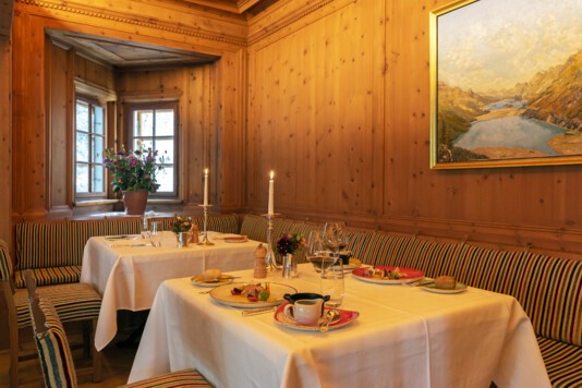 Im Engadiner Stübli serviert Ihnen das Hotel Seraina verschiedenste regionale und internationale Spezialitäten und ausgesuchte Tagesmenus.