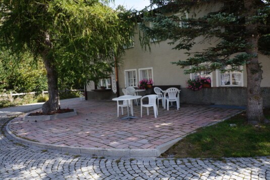 Im Sommer "bei schönem Wetter" bieten wir im Garten eine kleinere Karte an, oder Glacé und Kuchen. Oder auf der Terrasse vom Restaurant "La Passarella" am Dorfplatz.