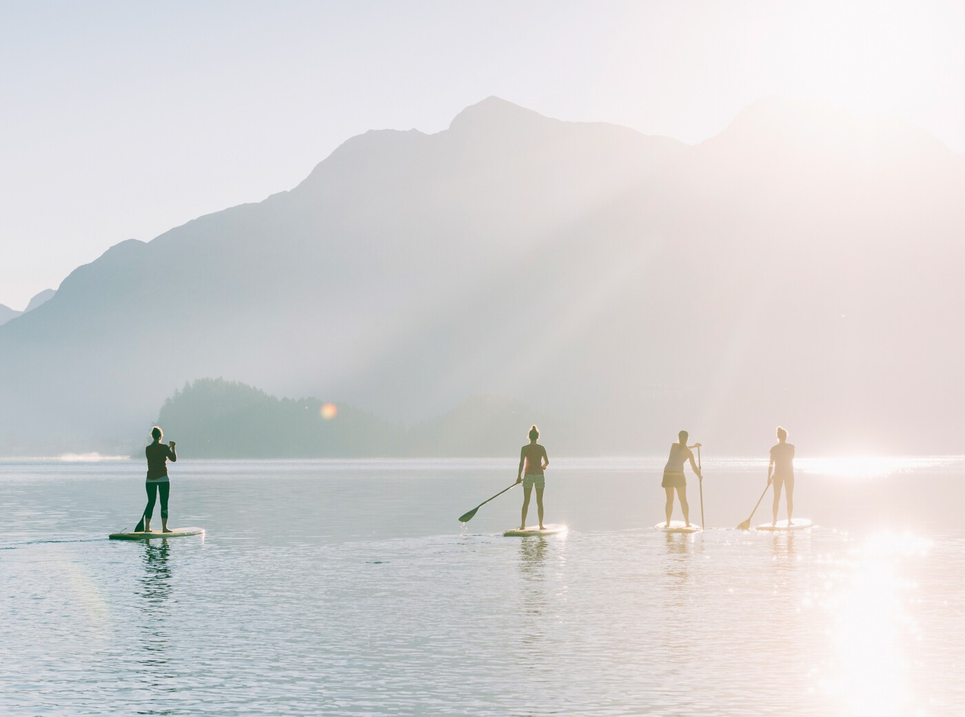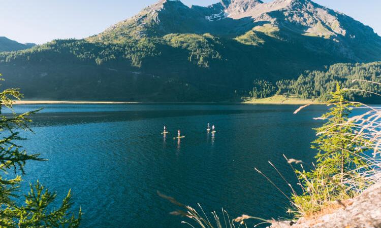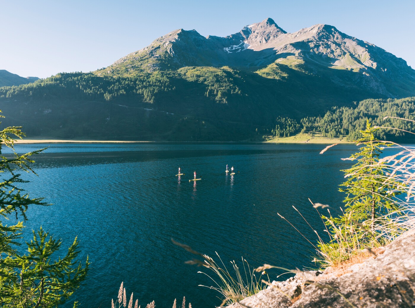 Der Silser- und der Silvaplanersee bieten hervorragende Verhältnisse für Stand-Up-Paddling-Ausflüge. Früh morgens wird’s zum idyllisch und unvergesslichen Erlebnis. SUP-Vermietungen