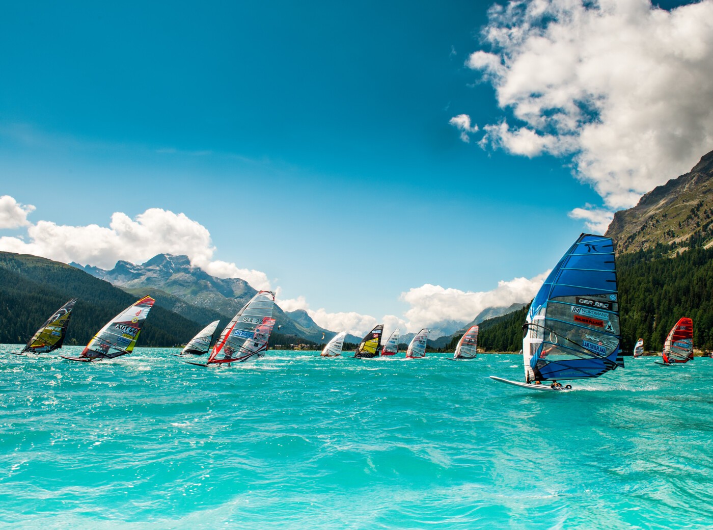 Windsurfen im Engadin ist eine Sache des täglichen Malojawinds. Zuverlässig sorgt er für beste Surf-Verhältnisse. Das Surf-Mekka befindet sich unweit von Sils, in Silvaplana am Silvaplanersee. Aber auch in Sils beim Beach Club auf der Nordseite des Silvaplanersees ist ein Surfcenter mit Einstieg. Zur Windsurfschule Silvaplana