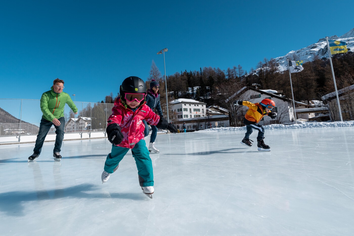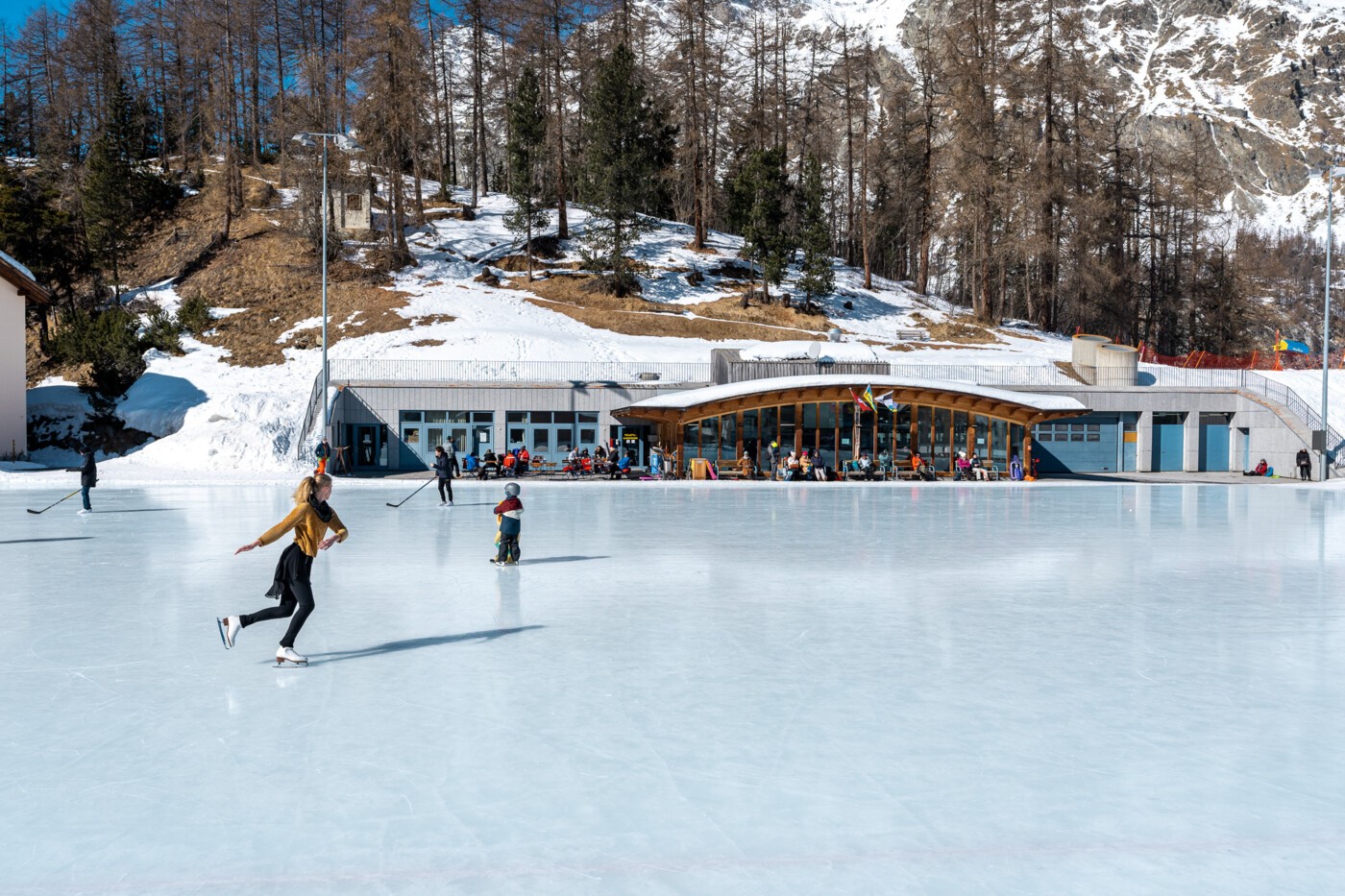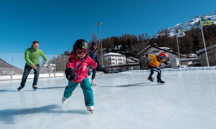 Der Eis- und Sportplatz Muot Marias ist der perfekte Ausgangs- und Treffpunkt für Sport- und Schneebegeisterte – für Schlittschuhlaufen, Curling, Hockey oder Langlauf. Er liegt mitten im Dorf Sils Maria. Mit seinem Kinderland ist der Sportplatz auch für die Kinder ein Winter-Eldorado.