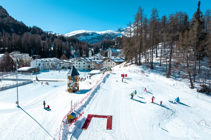 In der Kinderskischule im Kinderland Muot Marias beim Eisplatz in Sils Maria können Kinder ganz entspannt Skifahren lernen. Das kleine Einsteiger-Skigebiet mitten in Sils Maria bietet eine moderne Infrastruktur für Anfänger.