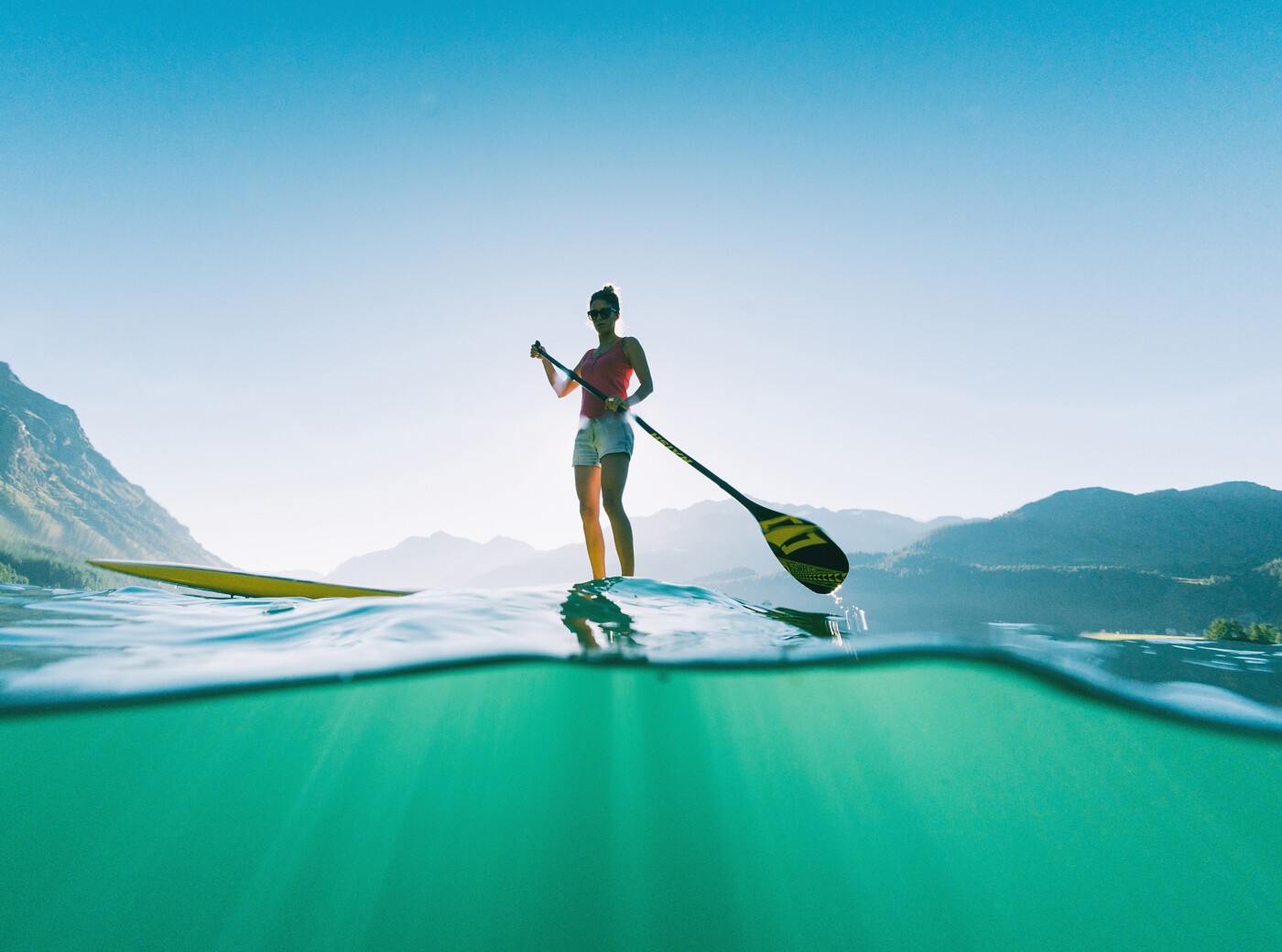 So erhaben auf dem Board zu stehen und über das Wasser zu gleiten, ist mehr als nur ein tolles Gefühl. Es ist auch ein Sport, bei dem jeder einzelne Muskel des Körpers gefordert wird. Dabei ist Stand Up Paddling nicht schwierig zu erlernen. Schon nach wenigen hundert Metern entdeckt man den Reiz des rhythmischen Paddelns. Zur Sicherheit trägt man am Fussgelenk eine Leash. Sie ist mit dem Board verbunden, so dass es nie davonschwimmen kann, sollte man ins Wasser fallen.