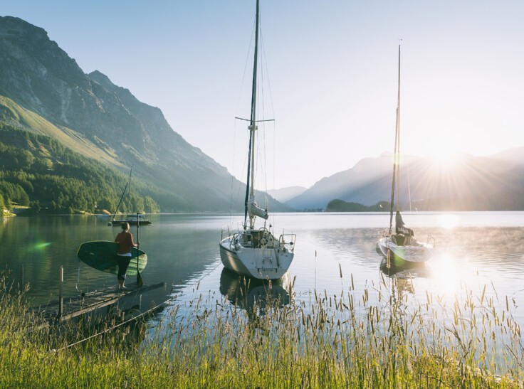 «Diese Atmosphäre, draussen auf dem Board, vom ersten Morgenlicht umhüllt. Das ist unbeschreiblich.» Für Fabia Leoni ist Stand Up Paddling in Sils mehr als ein Sport, es ihre Art, die Magie des Silsersees zu erleben. «Im Einklang mit der Natur sein: Es gibt für mich kaum einen Ort, wo ich das so intensiv erlebe wie auf dem Silsersee.» Weit und breit nur Natur, Licht und wunderbare Stille – da bleibt der Alltag weit am Ufer zurück.