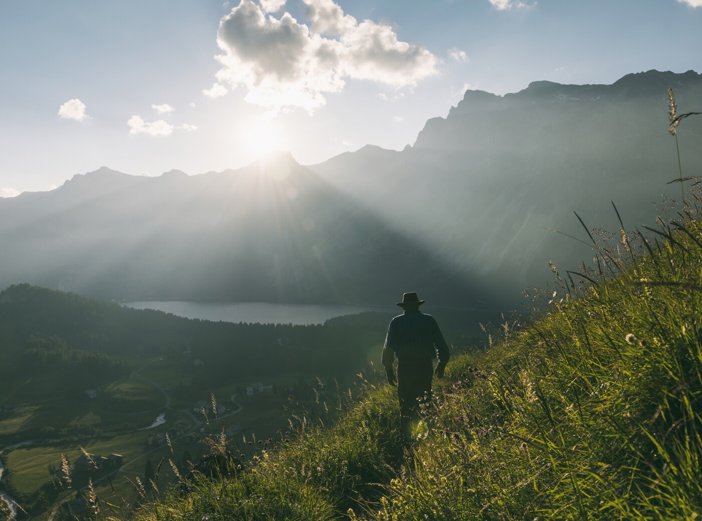 The Fex Valley in the Engadin is a veritable paradise for mountain flowers with an abundance of alpine roses, negritella or vanilla orchis, gentian and edelweiss. You can admire many of the renowned species of alpine flora on the sunny slopes of the Fex Valley. It's not only plant experts who thrive here, but also hikers like Gian.