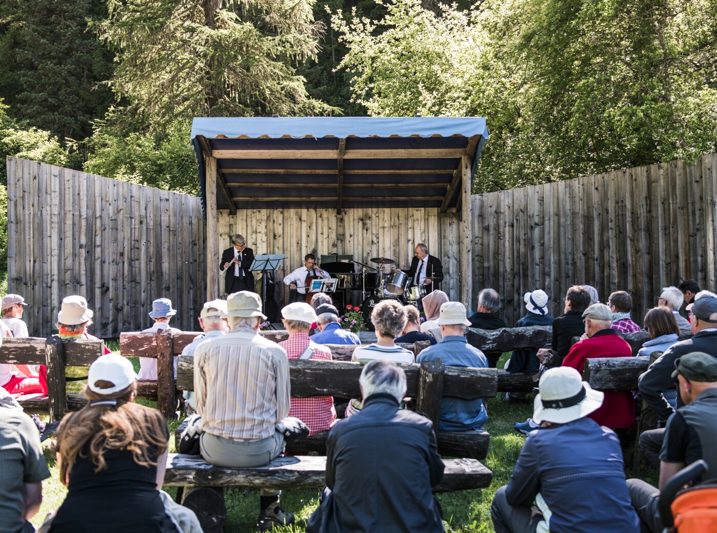 In Sils, you get the chance to watch great artists in an intimate setting: for example, at our international concerts with chamber music and recitals or at the many musical events that are held in the Waldhaus and Edelweiss hotels. At the summer Sunday afternoon open-air concerts in Fex Valley, nature becomes the stage, just like in the “Wasserzeichen” concerts, which are performed every year on a floating stage in a picturesque and romantic bay on the Chasté peninsula, captivating nature and music lovers alike.